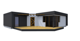 Étude pour une réhabilitation d'un mobile home, avec bardage extérieur en bois, et une extension sur salon. (2016)