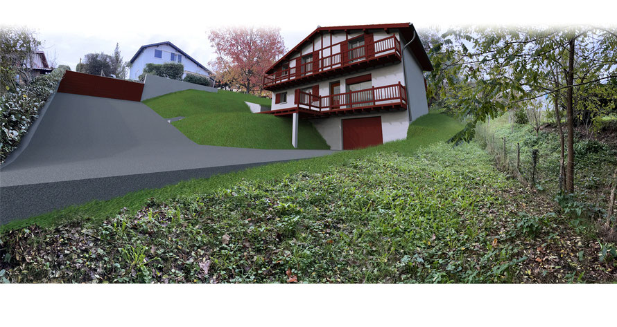 Illustration 3D pour permis de construire (PCMI 6) d’une maison individuelle au Pays Basque. (Pyrénées-Atlantiques, 2023)